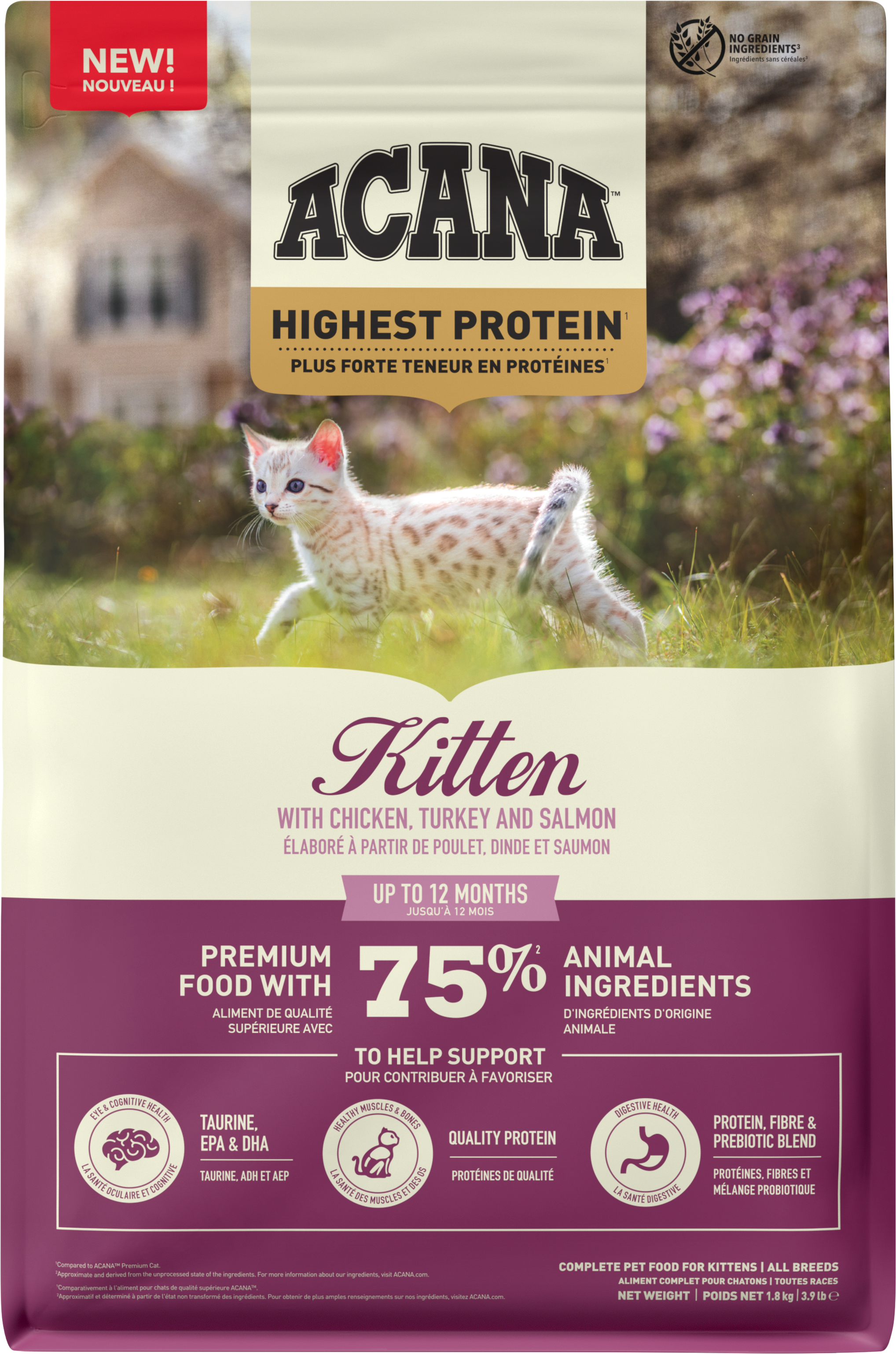 ACANA CAT HIGHEST PROTEIN KITTEN створений забезпечувати потреби зростаючого організму кошенят.