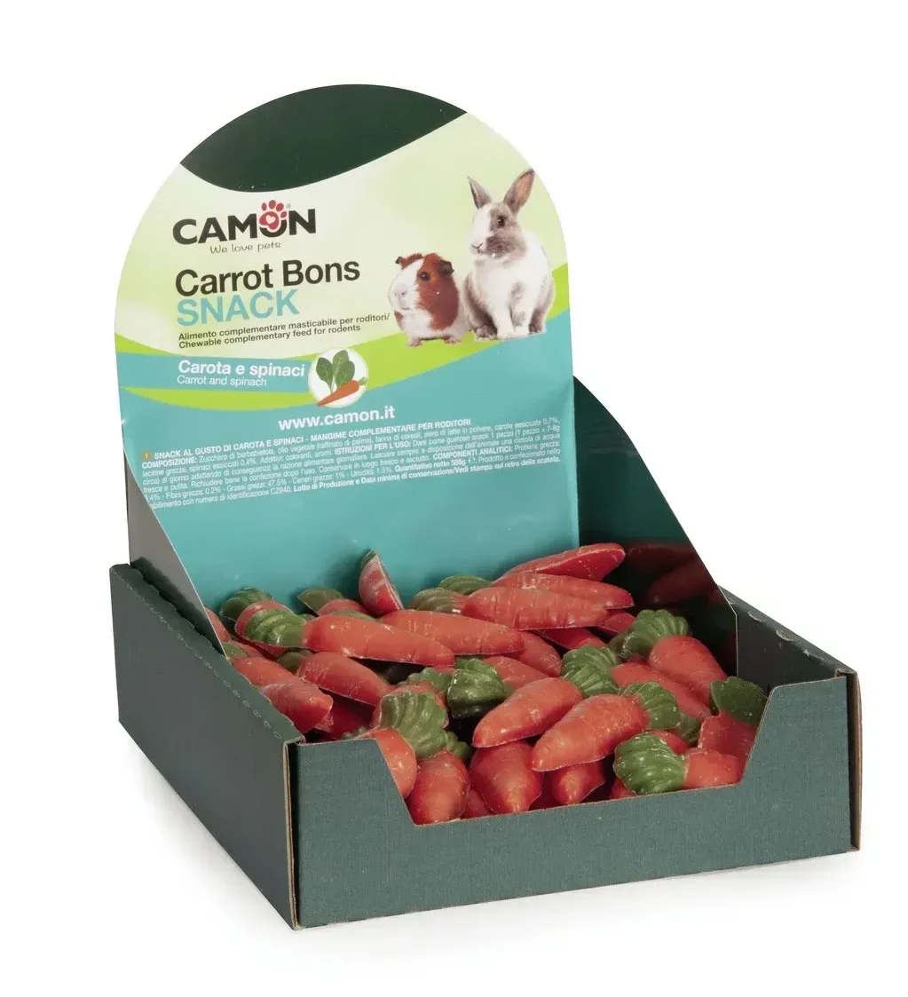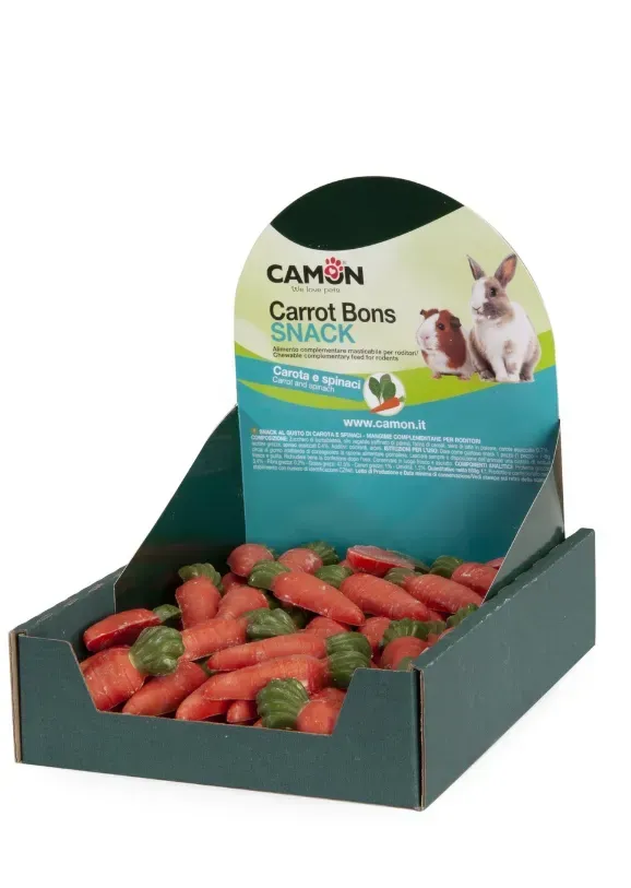 Овочева закуска для гризунів у формі морквинки Camon Carrot Bons Snacks з морковкою та шпинатом.