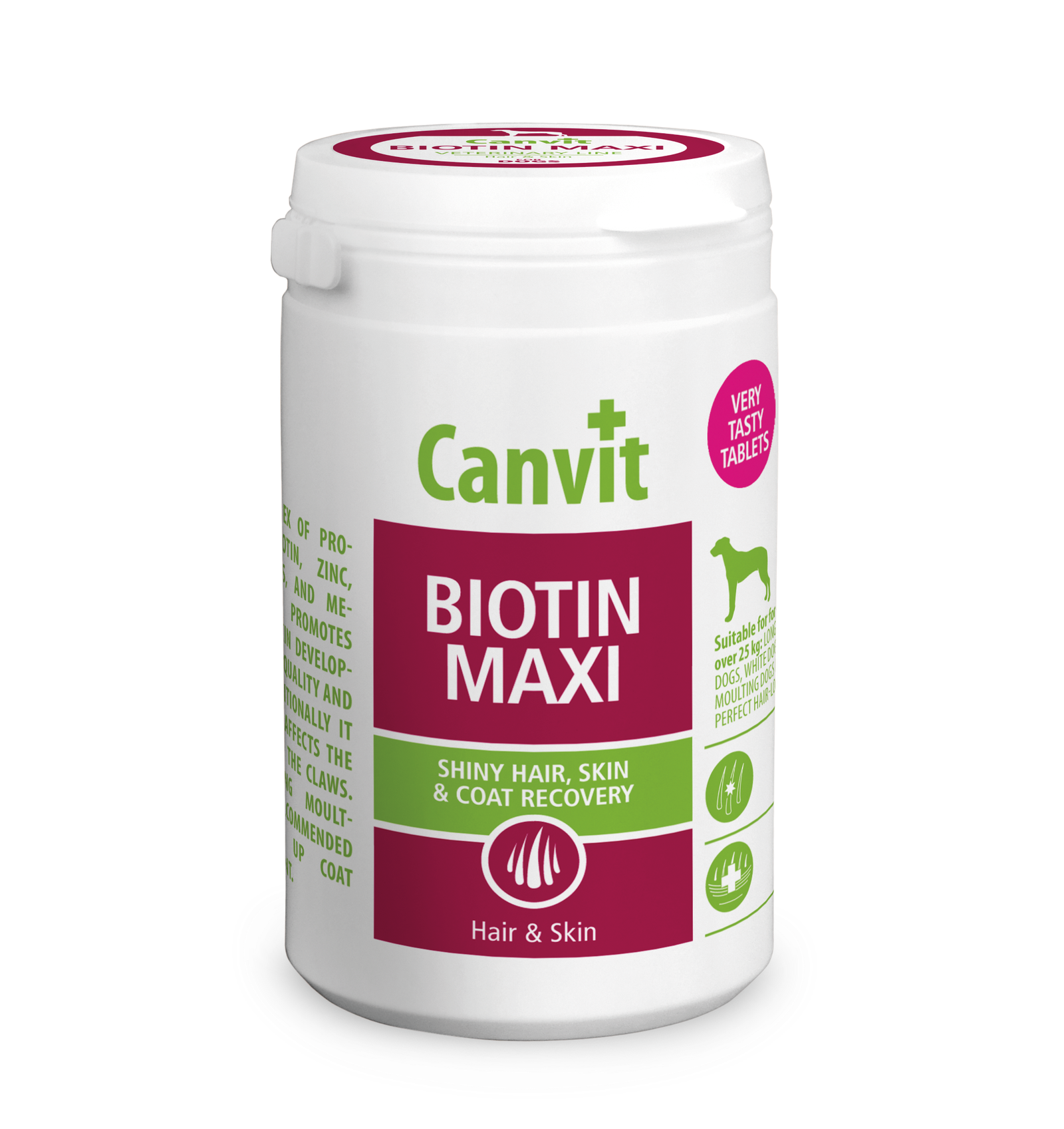 Canvit Biotin Maxi Dog ( Канвіт Біотин  Макс ) – вітаміни що підтримують гарний стан шкіри, блиск і якість шерсті, зміцнюють кігті. Для собак масою тіла понад 25 кг