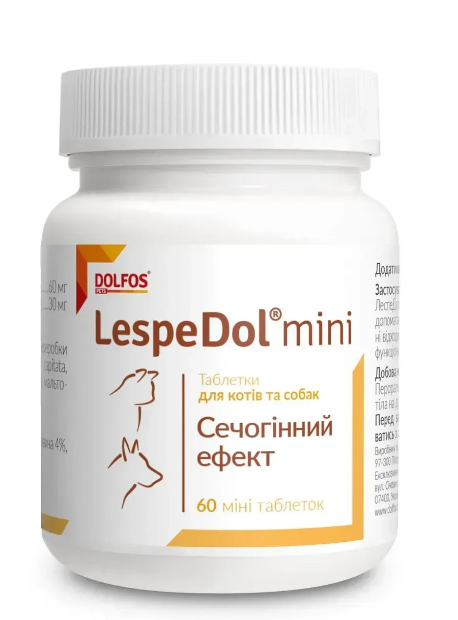 Dolfos LespeDol Mini Сечогінний препарат для котів і собак малих порід, 60таб