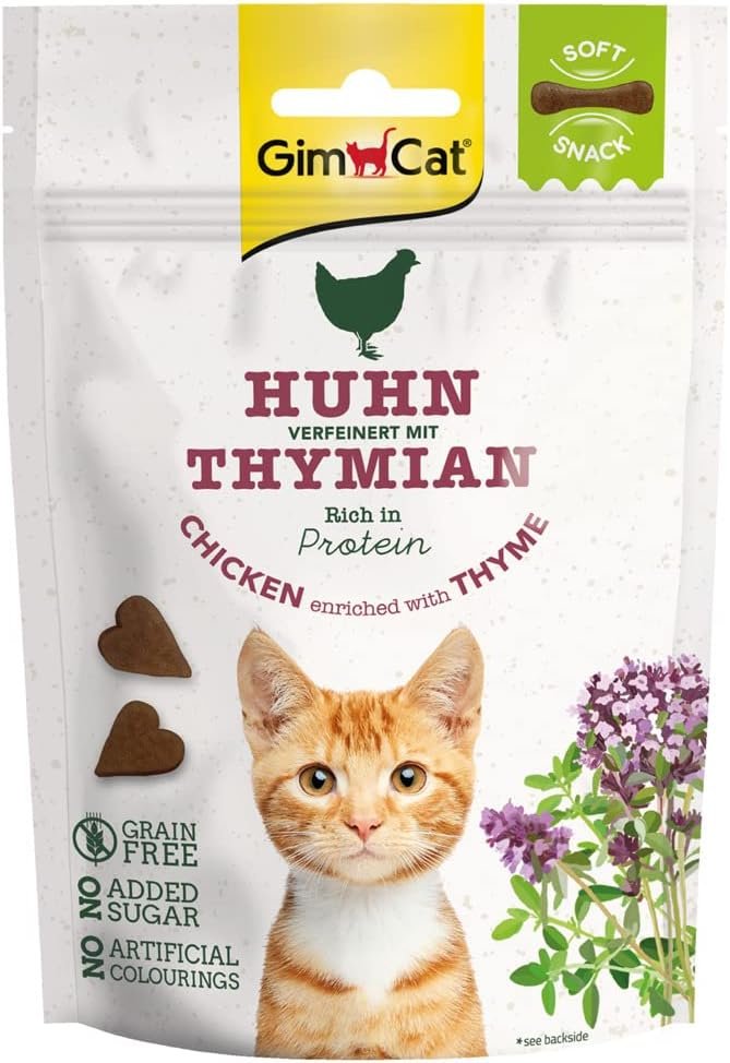 GimCat ( Джімкет ) Soft Snacks Chicken with Thyme корисні беззернові ласощі для котів з куркою та чебрецем, без додавання цукру.