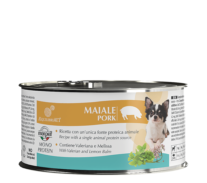 Консерва Marpet ( Марпет ) Equilibriavet Pork Monoprotein – повнораціонний монобілковий вологий корм зі свининою для дорослих собак.