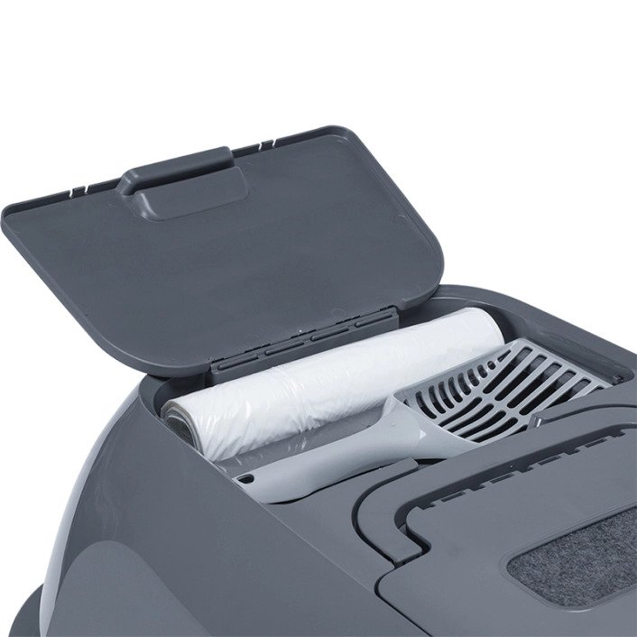 • передня панель широко відкривається, що дає змогу зручно видалити фекалії або грудочки наповнювача без знімання верхньої кришки;
