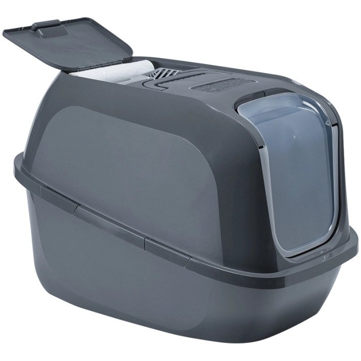 • вбудований вугільний фільтр у кришці туалету активно поглинає неприємні запахи всередині конструкції і не випускає їх назовні. Фільтр змінний. ВАЖЛИВО! Якщо ви використовуєте кварцовий або поглинальний глиняний наповнювач для котячого туалету, вугільний фільтр необхідно обов’язково зняти!;