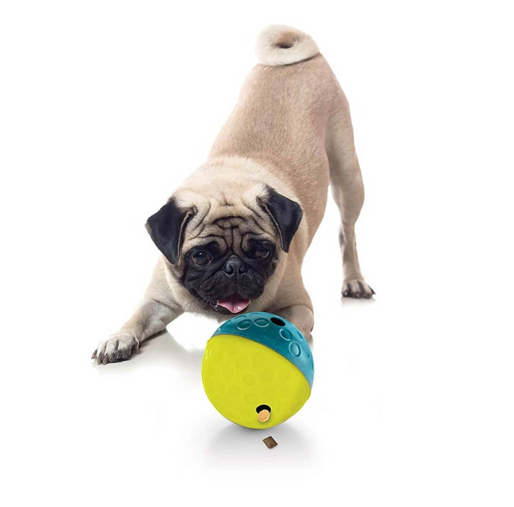 ВЕСЕЛІ ТА СМАЧНІ РОЗВАГИ: іграшка для собак Ніна Оттоссон Тріт Тамбл м’яч – це ідеальне поєднання тренування та частування! Все просто – заповніть диспенсер улюбленими ласощами, або гранулами та віддайте м’яч вихованцеві. А тепер, подивіться як ваш кмітливий розумник справляється з задачею та видобуває ласощі!