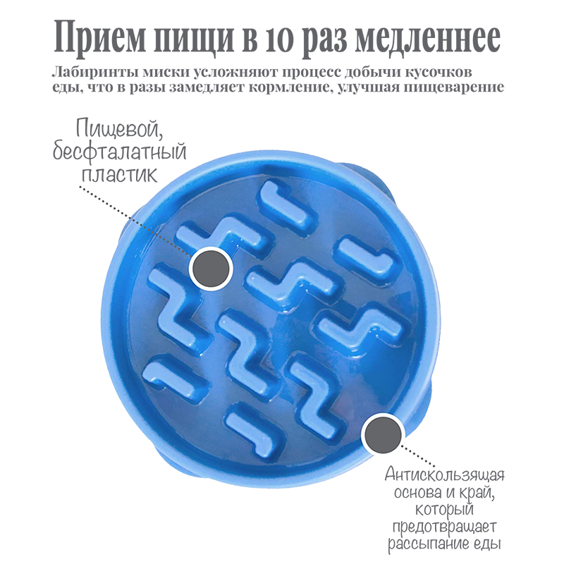 Фігурна миска-лабіринт для прийняття собакою їжі в здоровішому темпі. Допомагає уповільнити час годування в улюбленців зі звичкою поглинати їжу швидко, захоплюючи її всією пащею та не пережовуючи.