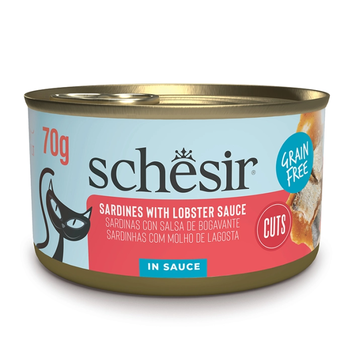 Шезір консерви для котів Schesir Grill Sardines with Lobster sauce – це беззерновий вологий корм з сардиною у соусі з лобстера для котів